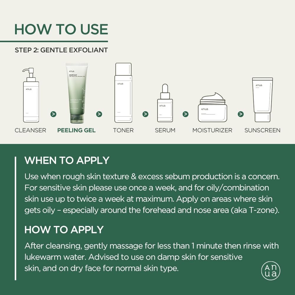 In addition to removing impurities and dead skin cells, this mild exfoliating gel with heartleaf extract soothes skin and leaves it looking bright and smooth. After cleansing your skin, generously apply a thin layer of peeling gel, taking care to avoid your eyes. Rinse with lukewarm water after gently massaging the peeling gel into your skin in circular motions.