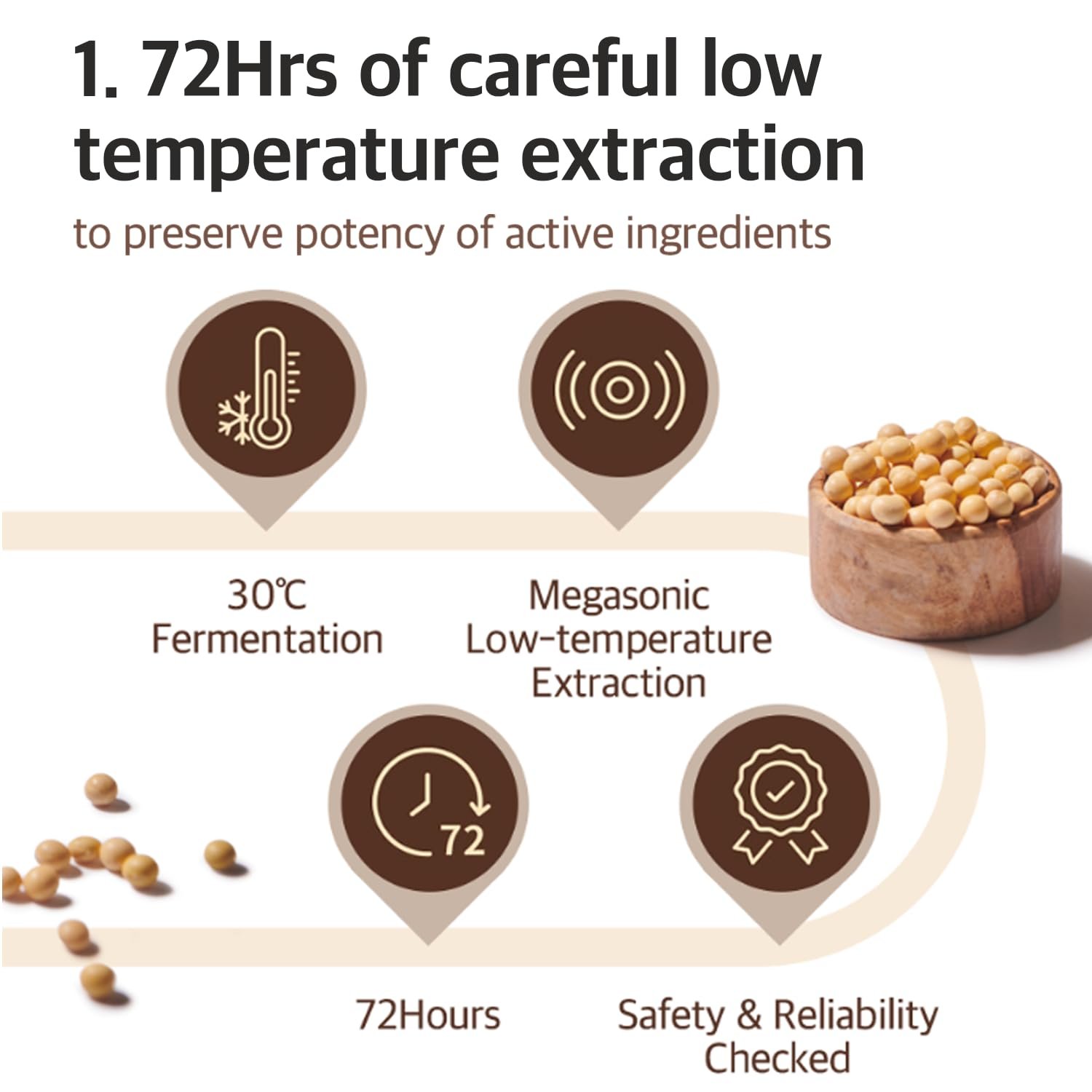 • The key ingredient in this product is fermented beans, which offer superior moisturizing, absorption, and adherence abilities compared to regular beans. They effectively replenish moisture deep into the skin, promoting firmness and resilience, resulting in healthier and more supple skin.
