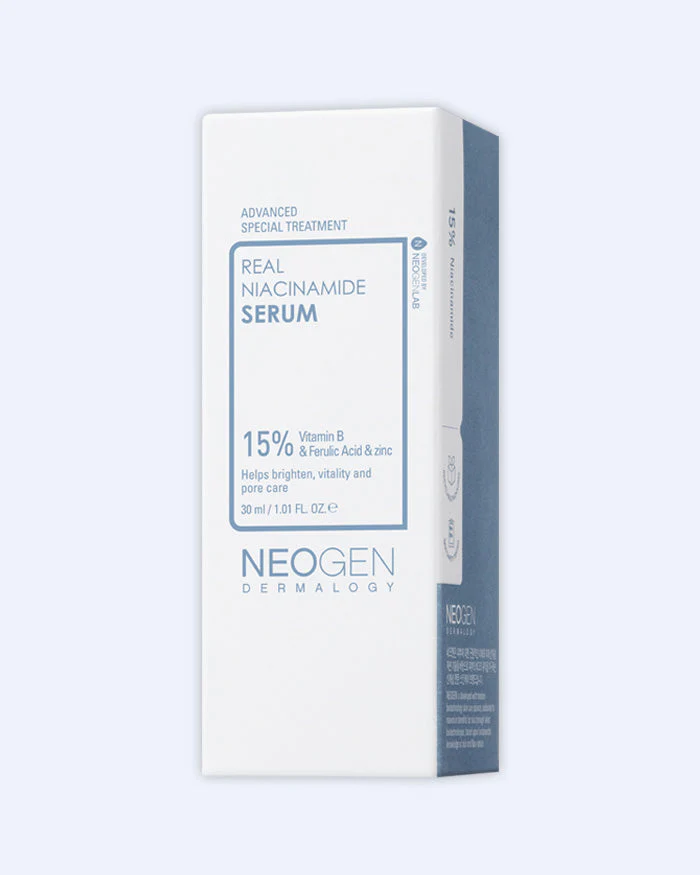 Neogen Real Niacinamide 15% Serum aids in a clear complexion and radiant and revitalized skin. This high concentration of niacinamide helps prevent blemishes and hyperpigmentation from appearing on the surface of the skin, while boosting the skin’s glow. This product has a pH level of 8.00±1.00.